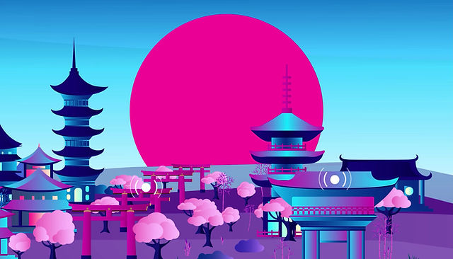 I did some research on the topography of Kyoto, Japan in order to keep the scene relatively accurate to the actual city. The client really wanted a geometric look to the graphics but could not decide between a flat aesthetic or a 3D aesthetic, so I recommended using a little of both to give the presentation a bit of a "Paper Mario" effect. I used a faux parallax effect on the motion between scenes to give the impression of depth, but kept the objects themselves flat using the gradients as a loose light source reference.